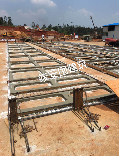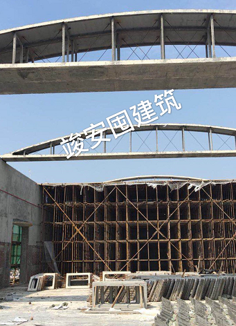 四川竣安囤建筑工程有限公司為專業預應力拱板施工公司,公司注冊資本為1000萬元。公司經營范圍:住宅房屋建筑、房屋建筑工程、市政公用工程、土石方工程服務、防水防腐保溫工程、鋼結構工程、橋梁工程、公路交通工程、地基基礎工程、園林綠化工程施工、水利水電工程、建筑裝飾工程、建筑勞務分包、砼結構構件制造、預應力工程專業承包。 公司現有專業技術人員22人,均從事預應力拱板施工超過10余年,技術力量強大,現場施工經驗豐富,能適應各種預應力拱板施工,專業技術工人500余人,專業隔板施工人員60人,木工120人,鋼筋工90人,混凝土工150人,專業電工、焊工20余人,專業張拉機手35人,專業拱板高空滑移就位人員50人,能進行10余個工地同時施工。 公司先后承建了中儲糧荊門直屬庫掇刀分庫、中儲糧監利直屬庫、 湖北省荊州川店儲備庫、湖北省咸寧儲備庫、湖南岳陽儲備庫、廣安火車站中直糧庫、湖北江陵儲備庫、湖北孝感儲備庫、廣安武勝國家糧庫、重慶秀山國家糧庫、云南玉溪紅塔區糧庫、云南西山區國家糧庫、云南曲靖陸良國家糧庫、云南江川糧庫、云南曲靖市糧庫、四川瀘縣嘉明糧庫、四川邛崍固驛種子庫、四川遂寧安居中直庫、云南石林糧倉、云南楚雄牟定糧庫、云南綏江縣糧庫、四川廣安儲備庫、云南盈江拆舊建新糧庫、貴州畢業糧庫、云南嵩明糧庫、重慶南川儲備庫、云南石林糧庫、遂寧直屬庫安居分庫、云南祿勸糧庫、綿陽三臺直屬庫、重慶渝西南糧庫、重慶墊江儲備庫、重慶永川儲備庫、重慶梁平儲備庫、重慶忠縣儲備庫、重慶江津儲備庫、重慶黔江儲備庫、黔江軍糧站、成都新都儲備庫、四川彭州儲備庫、四川蒙陽儲備庫、四川什邡儲備庫、四川遂寧儲備庫、廣安回龍儲備庫、達州開江物流園儲備庫、大理巍山儲備庫、大理云龍儲備庫、大理祥云儲備庫、云南威信儲備庫、昆明祿勸儲備庫、普洱景東儲備庫、臨滄雙江儲備庫、昭通大關儲備庫、楚雄南華儲備庫,庫房跨度24米。 公司專業承接預應力拱板板制作,采用空中預制施工工藝,僅需在室內地面進行拱板隔板預制。重點在高空利用原有部分圈梁進行加固改造形成張拉臺座,完成下弦板預應力張拉,一次性完成拱板屋架混凝土澆筑,待拱板屋架整體砼達到設計強度時,實施放張,用千斤頂頂起拱板放置專用滑輪車上,運用卷揚機在水平圈梁上滑移至設計安裝位置。本工藝不需搭設滿堂腳手架(僅局部搭設),不需大型機械吊裝,不需大型堆碼場地,比地下預制成本低,安全可靠。比滿堂腳手架耗材少,是一種經濟實用型工藝。